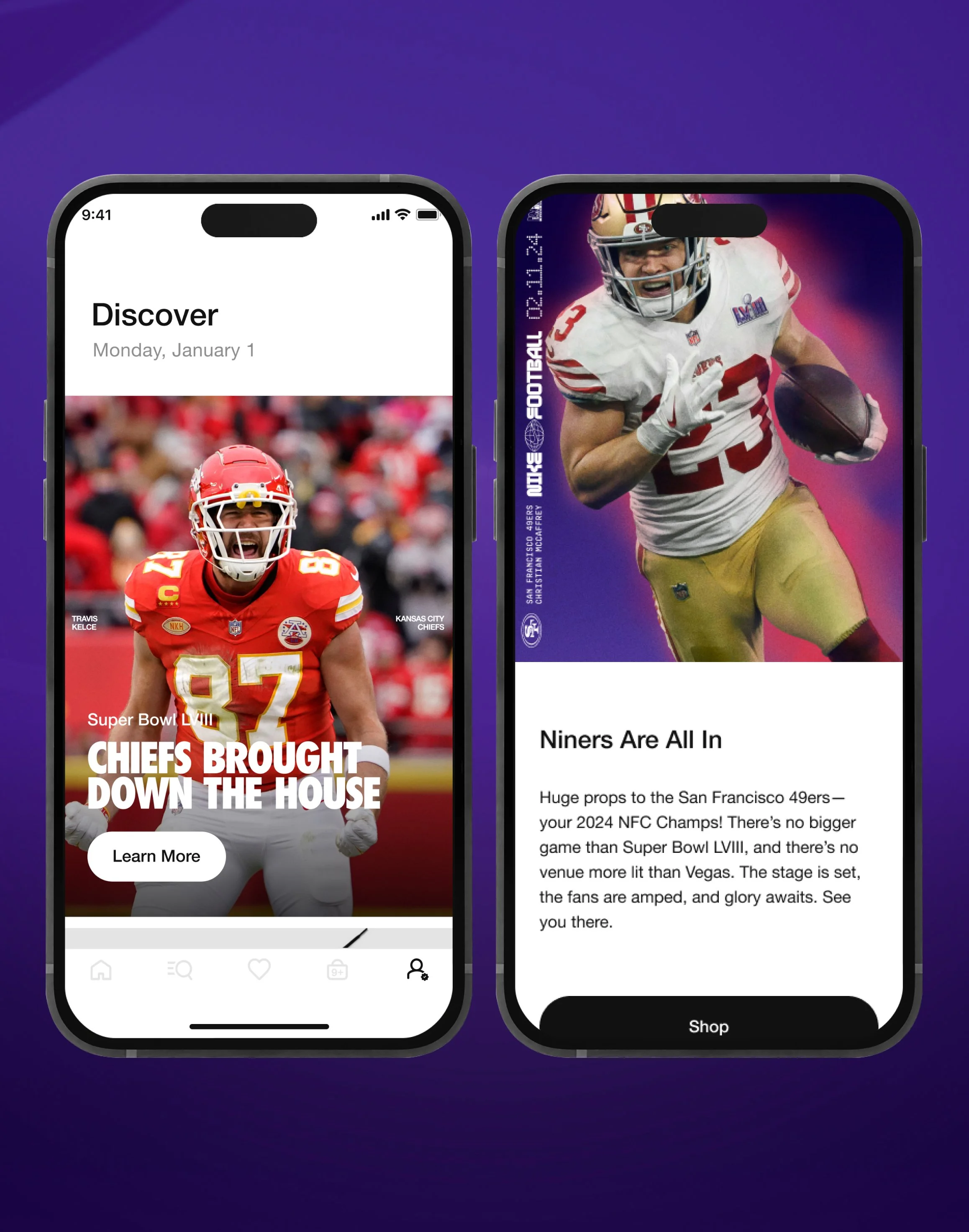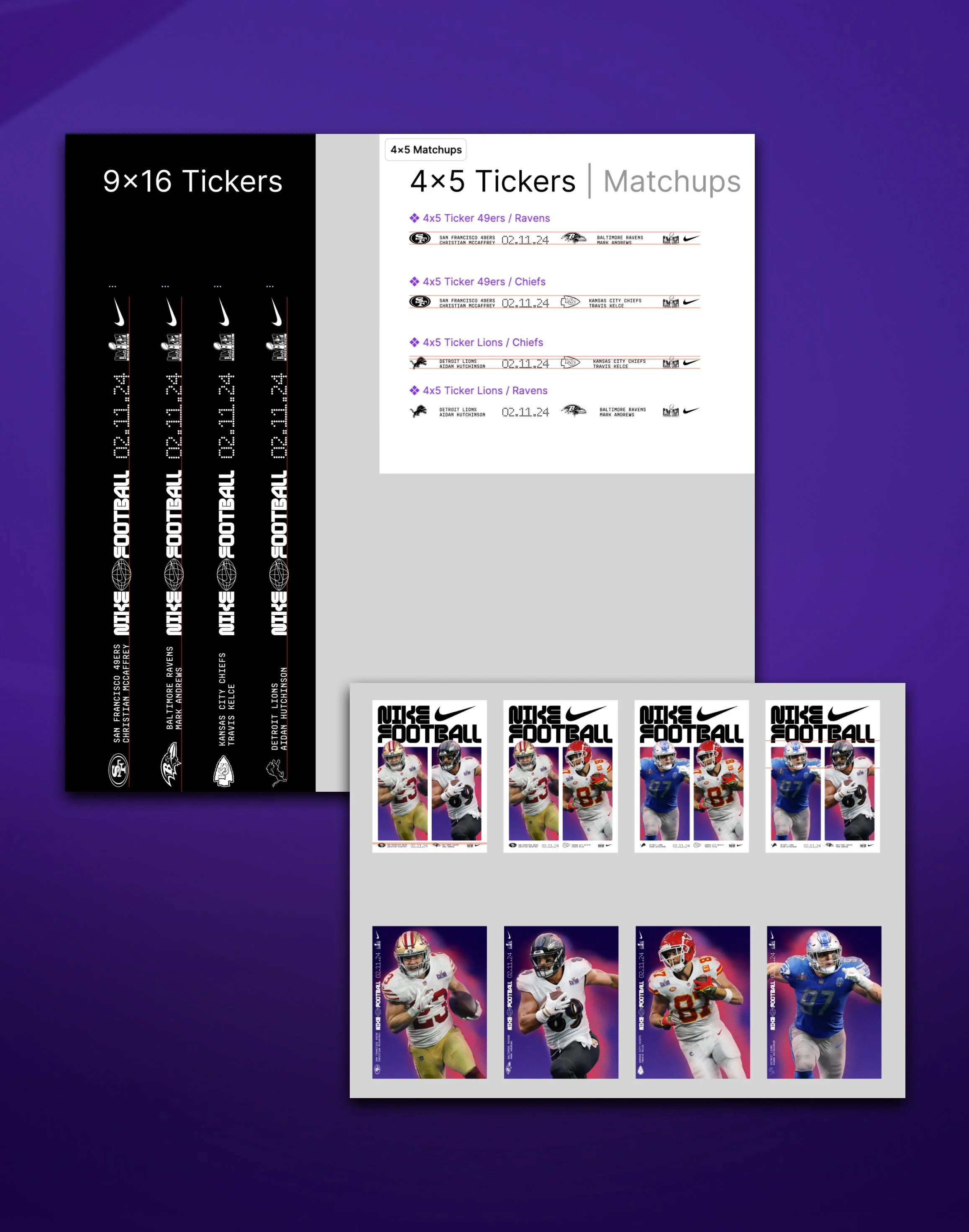 Super Bowl 58 has the biggest project I have been on to date. I worked closely with the creative team to create a system of graphics and layouts in place. Super Bowl was a very reactive project since no one knows what’s going to happen in the sport of football. We had to create and be ready to present fans with the ability to shop their favorite team heading into the big game. So I created a system within our figma board of main components of teams and graphics of all 4 possible Super Bowl matches after the championship weekend. As well as creating content for the winner.
